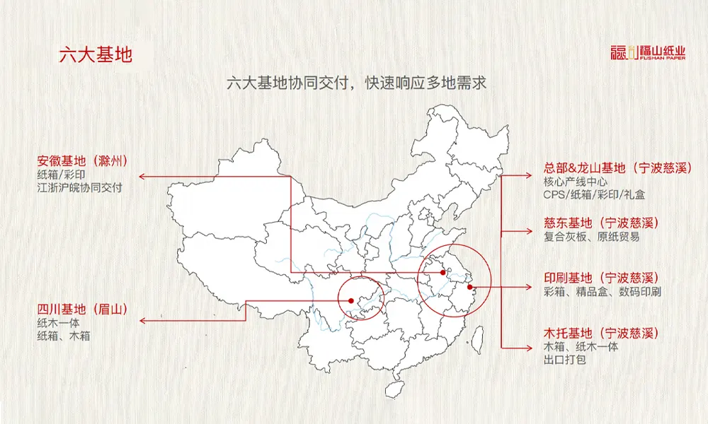- headquarters&Longshan Base (Cixi, Ningbo):Core production line center,CPS/carton/color printing/gift box